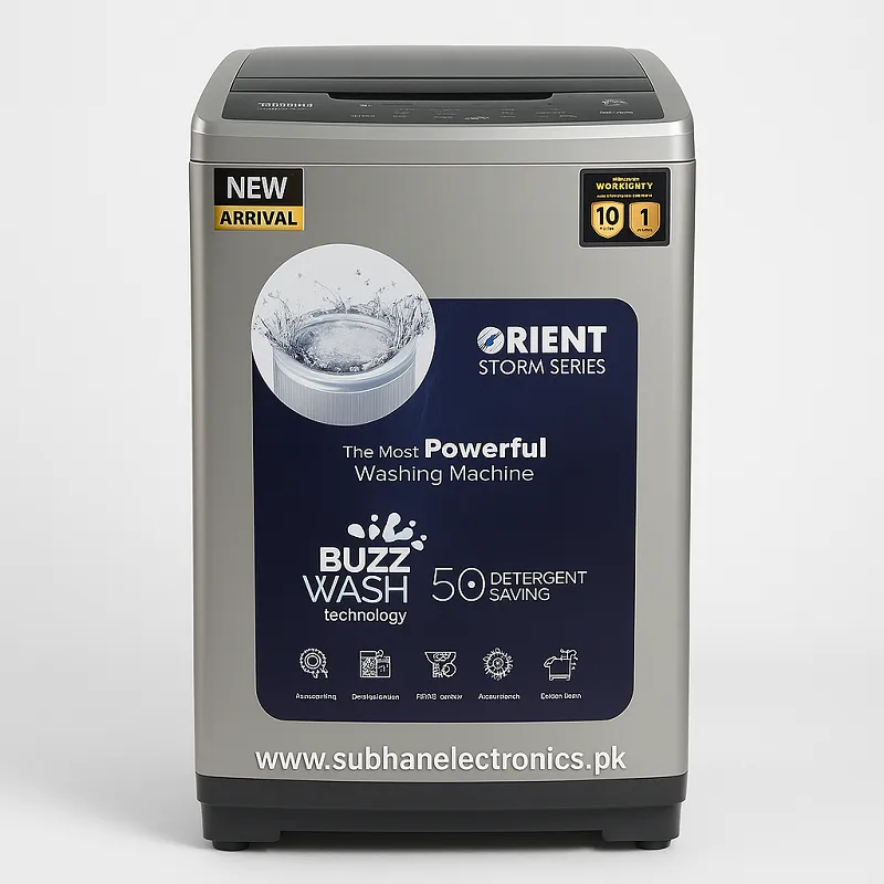 The Orient Storm 1350 Automatic Washing Machine offers deep cleaning with Multi Waterfall Technology, AI Logic, and Buzz Wash. It saves up to 50% detergent, features an Intelligent Softener Dispenser, Magic Filters, and Memory Recall. Durable, energy-efficient, and stylish?perfect for effortless, high-performance laundry every day.